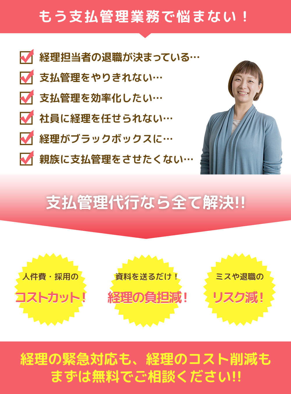 上記のようなお悩みをお持ちの方は、当社の支払管理代行サポートをご検討ください。