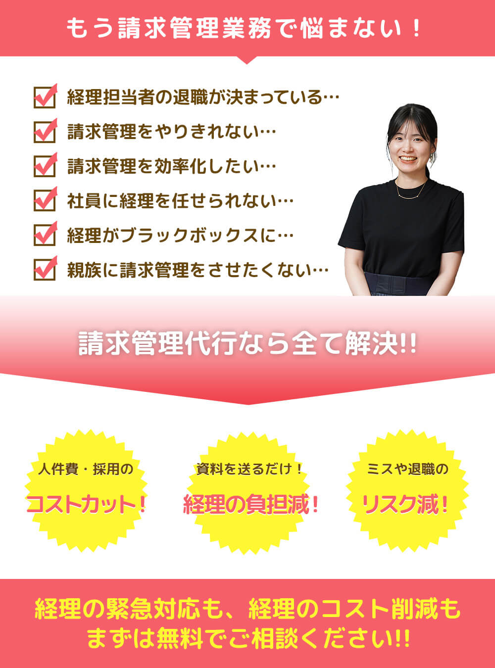 上記のようなお悩みをお持ちの方は、当社の請求書発行代行サポートをご検討ください。